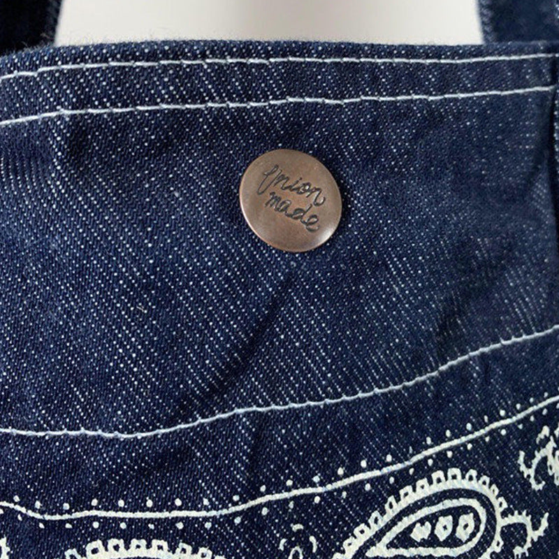 カシューフラワー,デニムウォッシュ, 内蔵ポケット,パイピング,スナップ |
